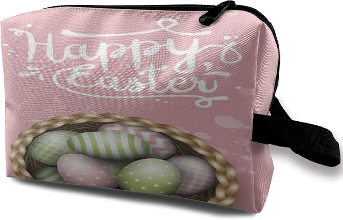 Amazon Easter Egg Happy Easter イースターエッグハッピーイースターピンクの背景 Background 化粧バッグ 収納袋 女大容量 化粧品クラッチバッグ 収納 軽量 ウィンドジップ Urgent 化粧ポーチ 通販